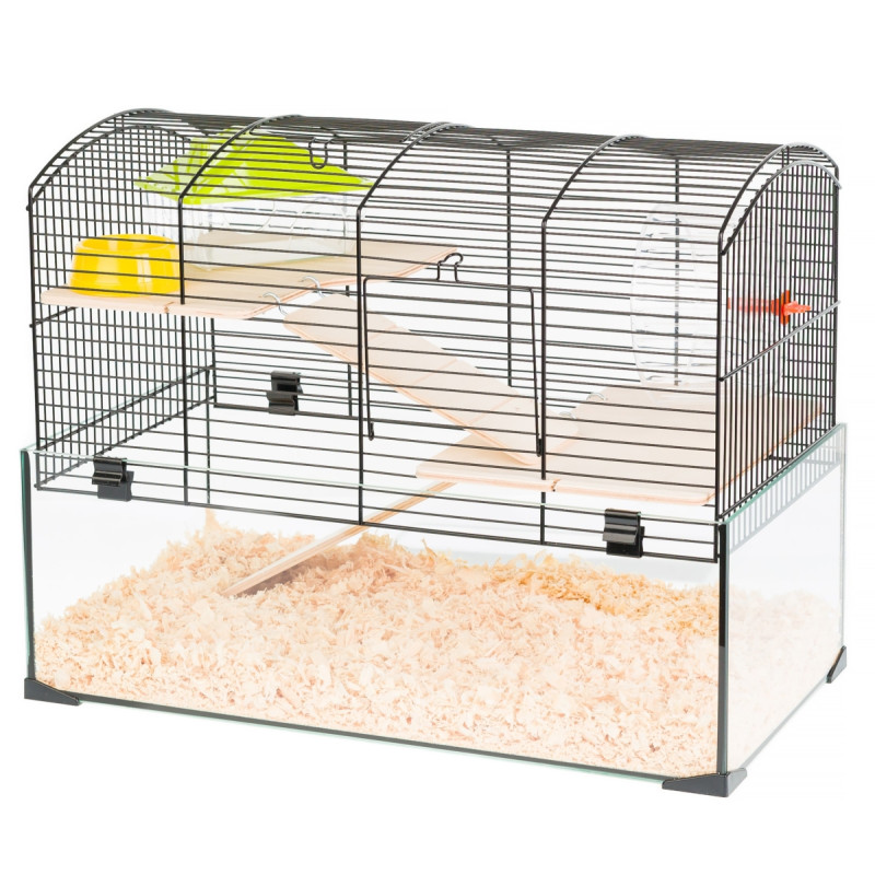 Inter-Zoo Aqualand 1 G164 Двухэтажная стеклянная клетка для морской свинки с беговым колесом, лестницей, домиком и кормушкой