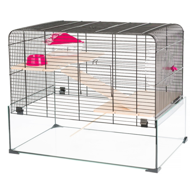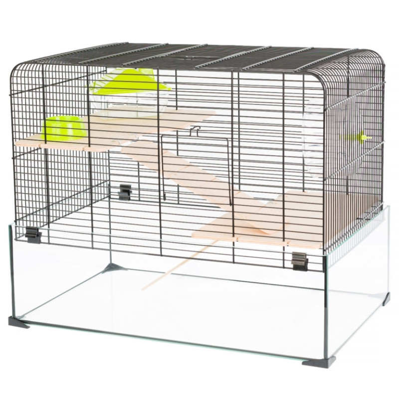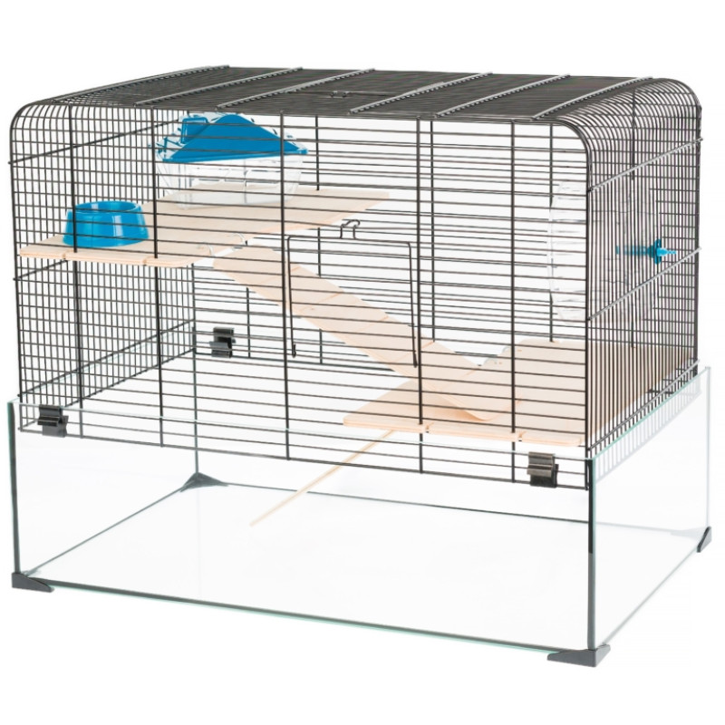 Inter-Zoo Aqualand 2 G165 Двухэтажная стеклянная клетка для кролика с беговым колесом, лестницей, домиком и кормушкой