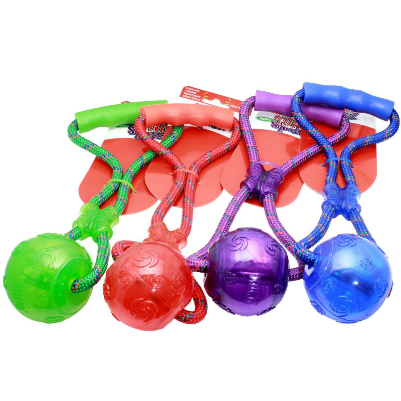 KONG Squeezz Ball With Rope Игрушка для собак Мяч с пищалкой на канате с ручкой