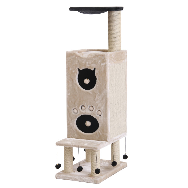 Многоуровневый игровой комплекс для кота Cadino имеет устойчивое прямоугольное основание, которое с легкостью выдерживает активную игру. Домик, игрушки и гамак для кошки обтянуты мягким плюшем и создают неповторимый уют, столбик-дряпалка изготовлен из сизаля и обеспечивает долговечность и эффективный уход за когтями без ущерба для мебели и интерьера.