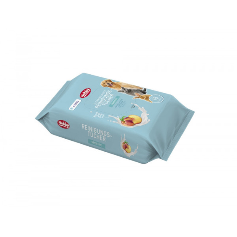 Nobby Cleaning Wipes Влажные салфетки с витамином Е та алоэ вера для собак, котов и грызунов с ароматом персика