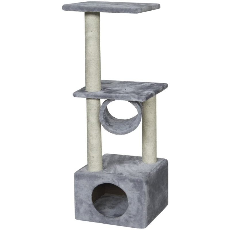 Многоуровневый игровой комплекс для кота Cuneo имеет устойчивое прямоугольное основание, которое с легкостью выдерживает активную игру. Домик, туннель и верхние платформы для кошки обтянуты мягким плюшем и создают неповторимый уют, столбики-дряпалки изготовлены из сизаля и обеспечивают долговечность и эффективный уход за когтями без ущерба для мебели и интерьера.
