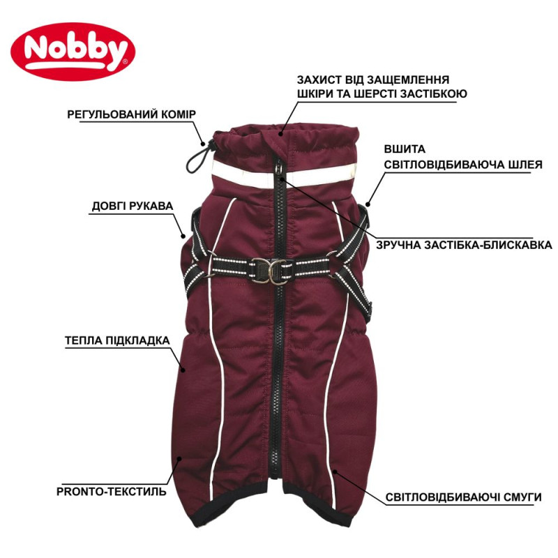 Nobby Dog Coat 2 in 1 Elor Водонепроницаемое пальто для собак с длинными рукавами, шлеей и регулируемым воротником (Bordo XS23)