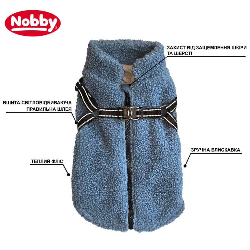 Nobby Dog Jacket 2 in 1 Plis Флисовый жакет для собак со вшитой светоотражающей шлеей (Blue M48)