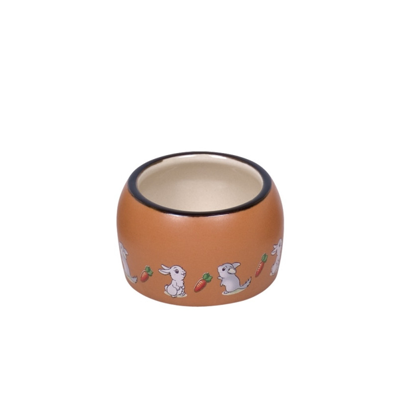 Керамическая миска с закругленными бортиками для кроликов Зайчата Funny Rabbit - изысканная миска для вашего любимца, изготовленная из качественной керамики. Яркий тематический дизайн с рисунком весёлых зайчиков дополнит яркими нотками клетку вашего любимца. Миска не поглощает запахов пищи, не меняет вкус блюд и абсолютно нетоксична. Керамическая миска достаточно тяжелая, что предотвращает скольжение миски по клетке. Классическая керамическая миска требует ручного ухода.