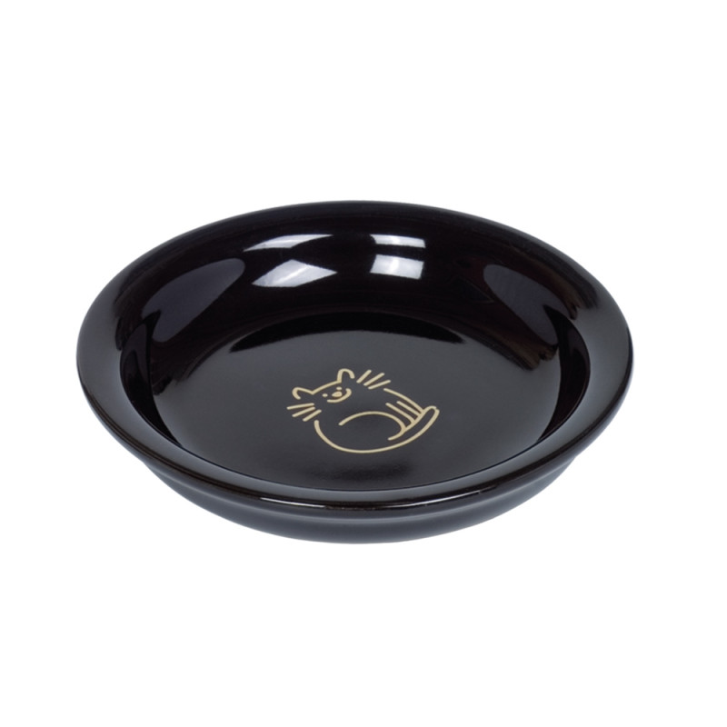 Керамическая тарелка для комфорта усов котов Золотой кот Golden Cat - изысканная миска для вашего любимца, изготовленная из качественной керамики идеально подходит для кормления котика, ведь технология изготовления миски в виде тарелки помогает представителю плоскомордой породы удобно пить и есть. Удобный диаметр предотвращает дискомфорт усов и носа во время утоления жажды или голода. Яркий тематический дизайн с золотым котиком дополнит любой современный интерьер. Миска не поглощает запахов пищи, не меняет вкус блюд и абсолютно нетоксична. Керамическая миска достаточно тяжелая, что предотвращает скольжение миски по полу. Классическая керамическая миска требует ручного ухода. Модель "Golden Cat" нельзя использовать в микроволновой печи.