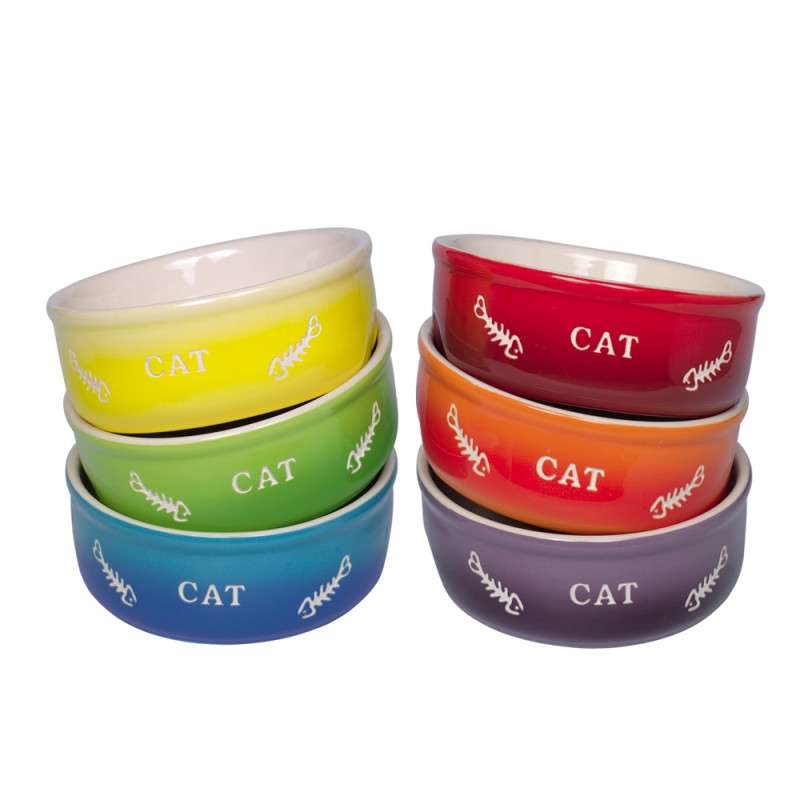 Керамическая миска для котов Градиент Gradient - изысканная миска для вашего любимца, изготовленная из качественной керамики. Яркий тематический дизайн с градиентной окраской и рисунком рыбьей кости, что так нравится котикам, дополнит любой интерьер. Миска не поглощает запахов пищи, не меняет вкус блюд и абсолютно нетоксична. Керамическая миска достаточно тяжелая, что предотвращает скольжение миски по полу. Классическая керамическая миска требует ручного ухода.