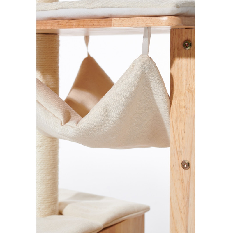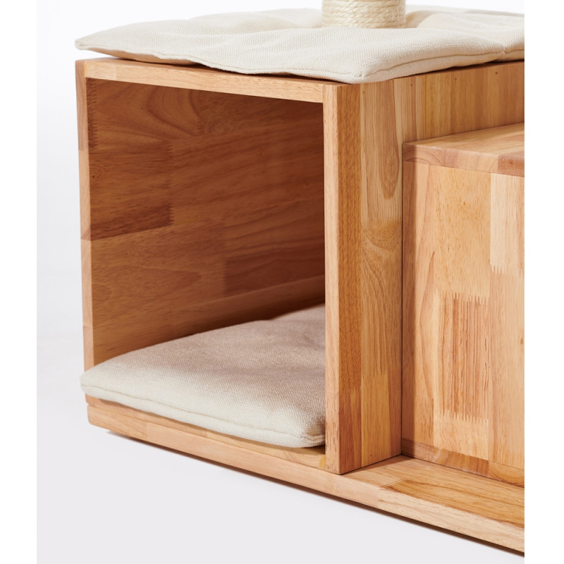 Игровой комплекс-лазалка для кота Ligno изготовлен из высококачественной древесины каучукового дерева, имеет устойчивое прямоугольное основание, с легкостью выдерживает активную игру, домики, гамак и верхние платформы для кошки оснащены лежанками из мягкого плюша и создают неповторимый уют, столбик-когтеточка изготовлен из сизаля и обеспечивает долговечность и эффективный уход за когтями без ущерба для мебели и интерьера.