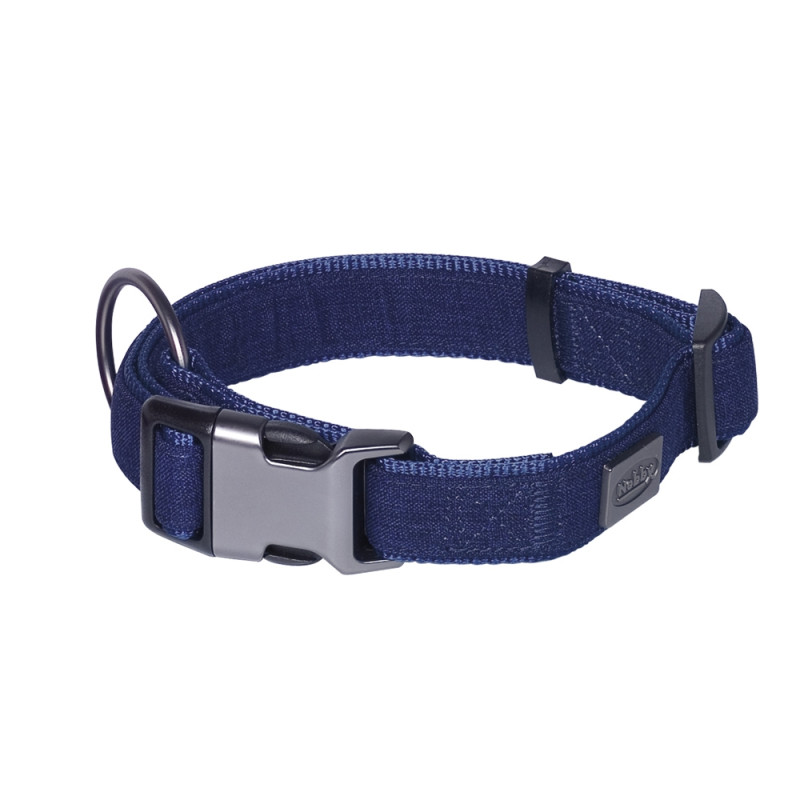 Nobby Linen Deluxe Collar Нейлоновый усиленный ошейник с рывковым фастексом для активных собак (Blue M-L)