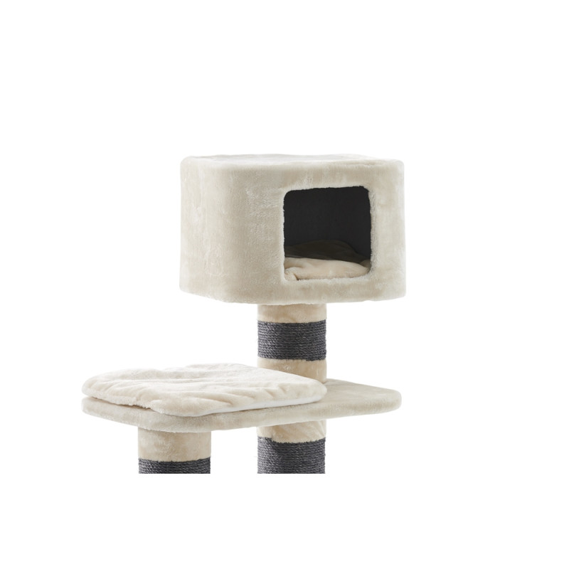 Многоуровневый игровой комплекс для кота Loano имеет устойчивое прямоугольное основание, которое с легкостью выдерживает активную игру. Домики и верхние платформы для кошки обтянуты мягким плюшем и создают неповторимый уют, столбики-дряпалки изготовлены из сизаля и обеспечивают долговечность и эффективный уход за когтями без ущерба для мебели и интерьера.