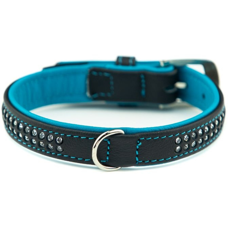 Nobby Pacific Deluxe Collar Кожаный ошейник со стразами и цветной подкладкой для собак (Turquoise M)