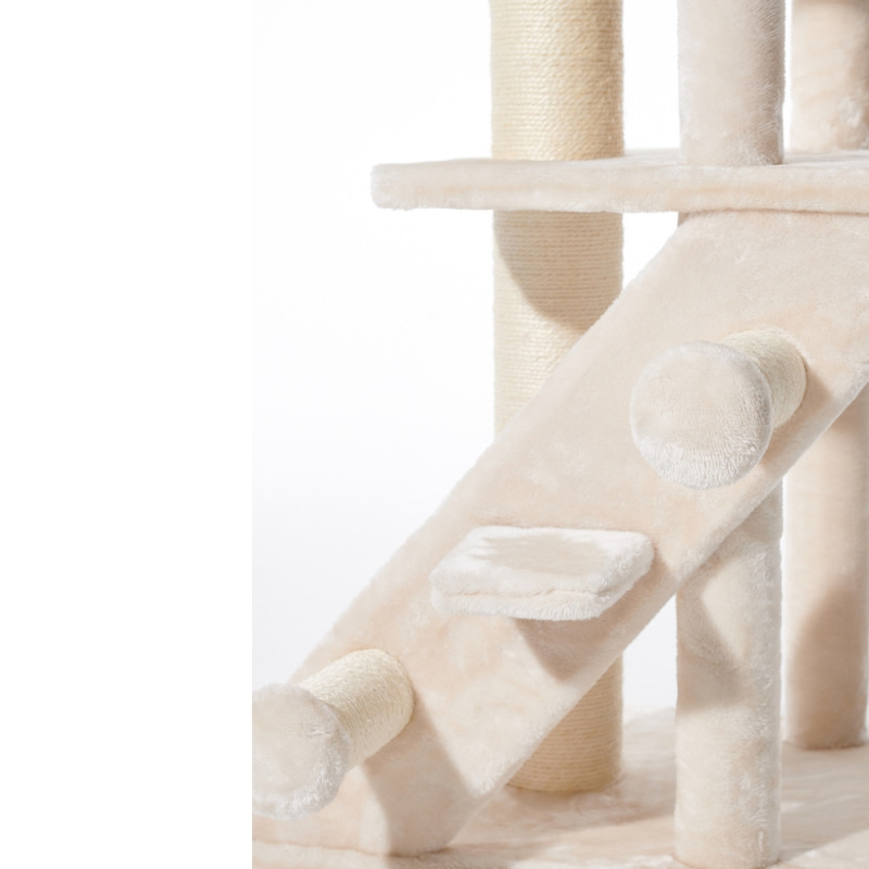Лестница в игровом комплексе для кошек добавляет возможностей для активных упражнений, развивает ловкость и координацию. Она имитирует естественную среду, где кошки любят карабкаться на деревья, прыгать на ветки или исследовать склоны, развивая мышцы и поддерживая тонус.