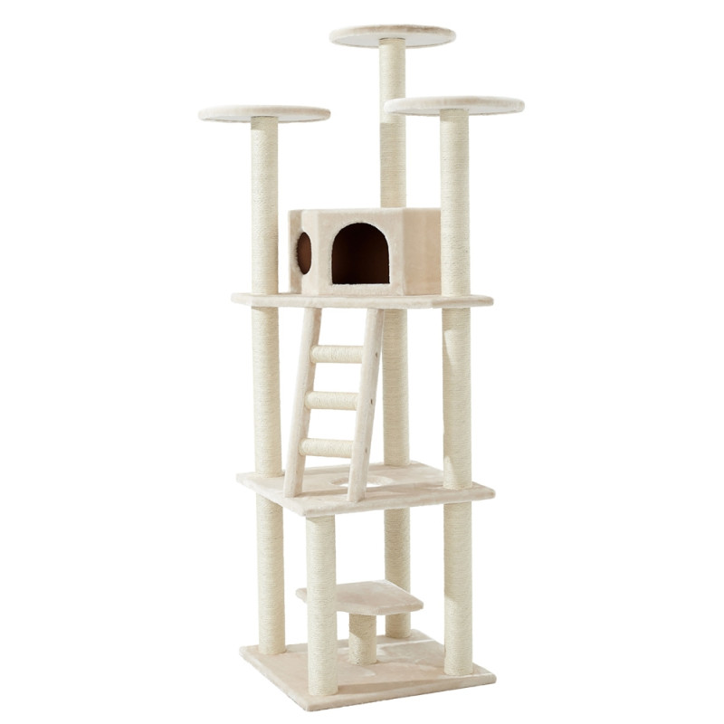 Высокая когтеточка-лазалка для кота Sultan имеет устойчивую прямоугольную основу, которая с легкостью выдерживает активную игру. Домик, лестница и верхние платформы для кошки обтянуты мягким плюшем и создают неповторимый уют, столбики-дряпалки изготовлены из сизаля и обеспечивают долговечность и эффективный уход за когтями без ущерба для мебели и интерьера.