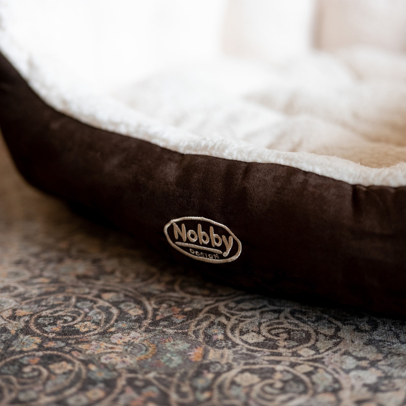 Меховой лежак-софа с бортиками для собак и котов Taika - уютный и комфортный отдых вашего четвероногого любимца. Лежак изготовлен из мягкого плюша коричневого цвета с алькантарой, шерстяно-белой внутренней стороной и оснащен реверсивной подушкой. Наполнитель из хлопка обеспечивает особенно приятный комфорт в постели. Модель "Taika" можно стирать при температуре 30°C в стиральной машине.