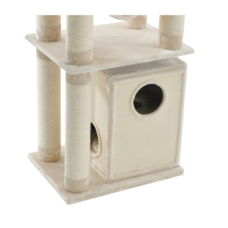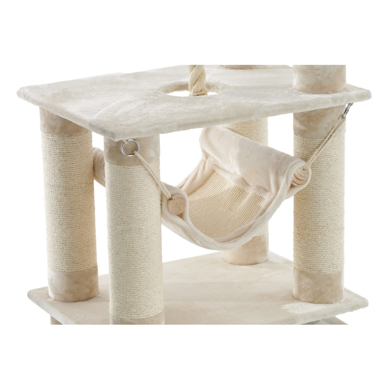 Большой игровой комплекс для кота Telde имеет устойчивую прямоугольную основу, которая с легкостью выдерживает активную игру. Домик, гамак и верхние платформы для кошки обтянуты мягким плюшем и создают неповторимый уют, столбики-дряпалки изготовлены из сизаля и обеспечивают долговечность и эффективный уход за когтями без ущерба для мебели и интерьера.