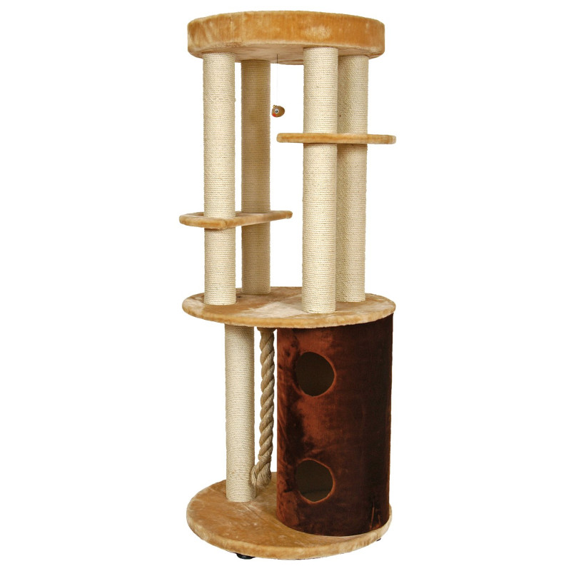 Игровой комплекс для кота Zelon имеет устойчивое круглое основание, которое с легкостью выдерживает активную игру. Домик и верхние платформы для кошки обтянуты мягким плюшем и создают неповторимый уют, столбики-дряпалки изготовлены из сизаля и обеспечивают долговечность и эффективный уход за когтями без ущерба для мебели и интерьера.
