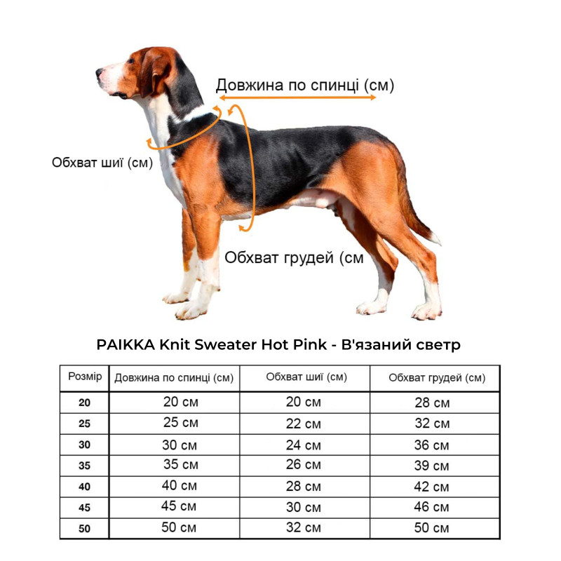 Чтобы определить базовый размер свитера PAIKKA, измерьте спину собаки от шеи до основания хвоста. Если ваш любимец находится между двумя размерами, мы рекомендуем выбрать больший размер. Обратите внимание, что размеры на таблице размеров являются максимальними.