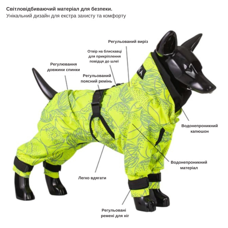 PAIKKA Rain Suit Водонепроницаемый костюм со светоотражающим узором для собак