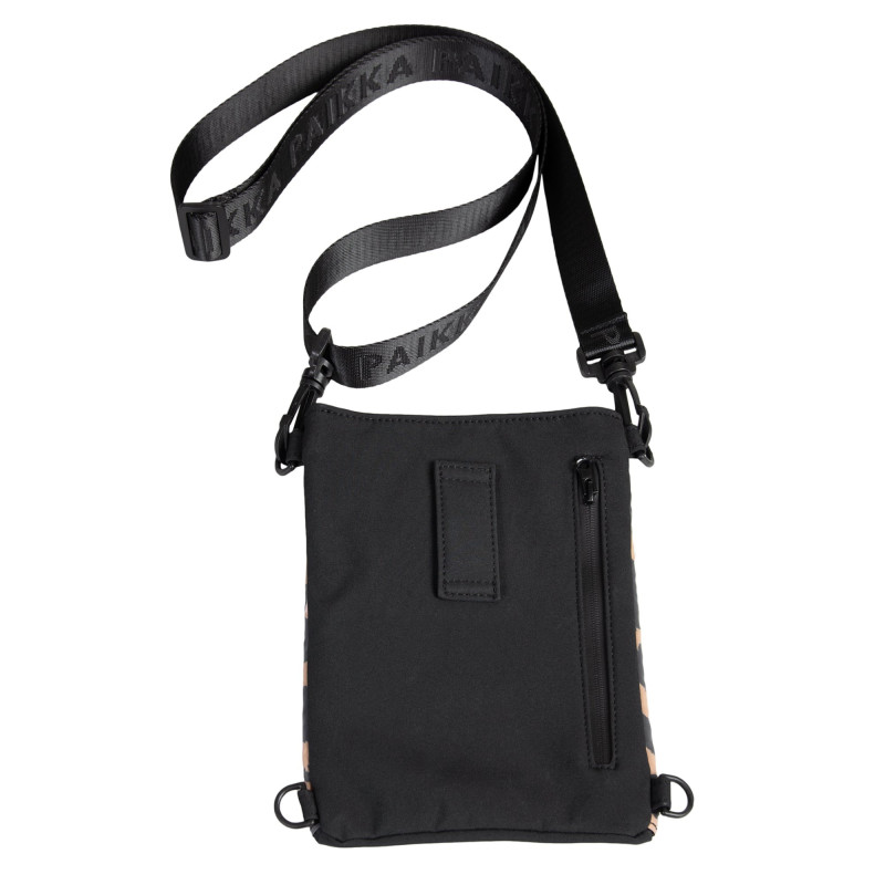 Сумочка имеет компактную прямоугольную форму, регулируемый ремень, петлю для поясного ремня, что позволяет носить изделие как на плече, так и на поясе, и оснащена D-кольцами для крепления необходимых аксессуаров, таких как отпугиватель бродячих животных и кликер или для крепления ключей. Мощная магнитная застежка делает невозможным внезапное открытие сумки и выпадение вещей даже во время самых активных прогулок. Передний и задний карманы на застежке-молнии позволяют удобно разместить мелкие предметы первой необходимости.