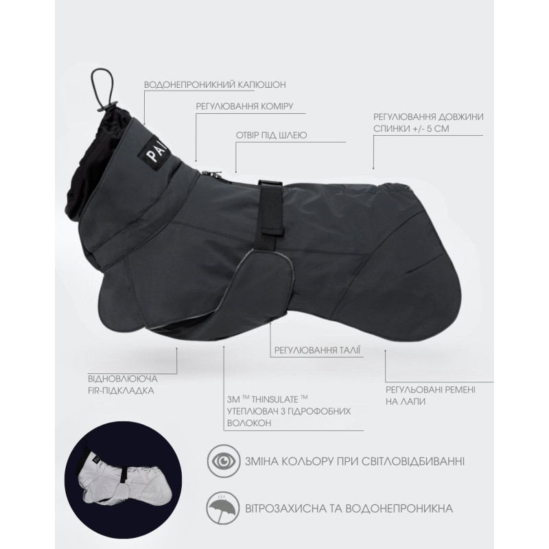PAIKKA Visibility Winter Jacket Dark Зимняя куртка на FIR-подкладке и белым светоотражением для собак