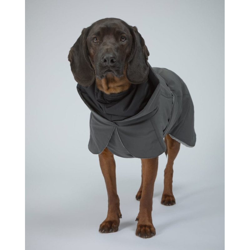 Куртка и ее швы на 100% водонепроницаемы, так как каждый шов обработан специальным термоскотчем. Удобный регулируемый капюшон надежно защитит уши и голову от ливня и мокрого снега. Куртка изготовлена по современным технологиям и «умным» лекалам с регулируемыми вырезом, ремнем на талии, длиной спины и лямок для лап, что позволяет полностью адаптировать куртку под любую собаку.