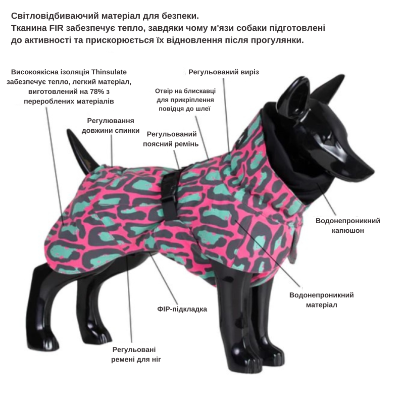 позволяет полностью адаптировать куртку под любую собаку.