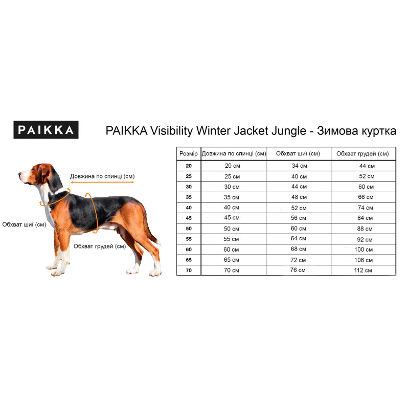 PAIKKA Visibility Winter Jacket Jungle Зимняя куртка со специальной FIR-подкладкой для собак