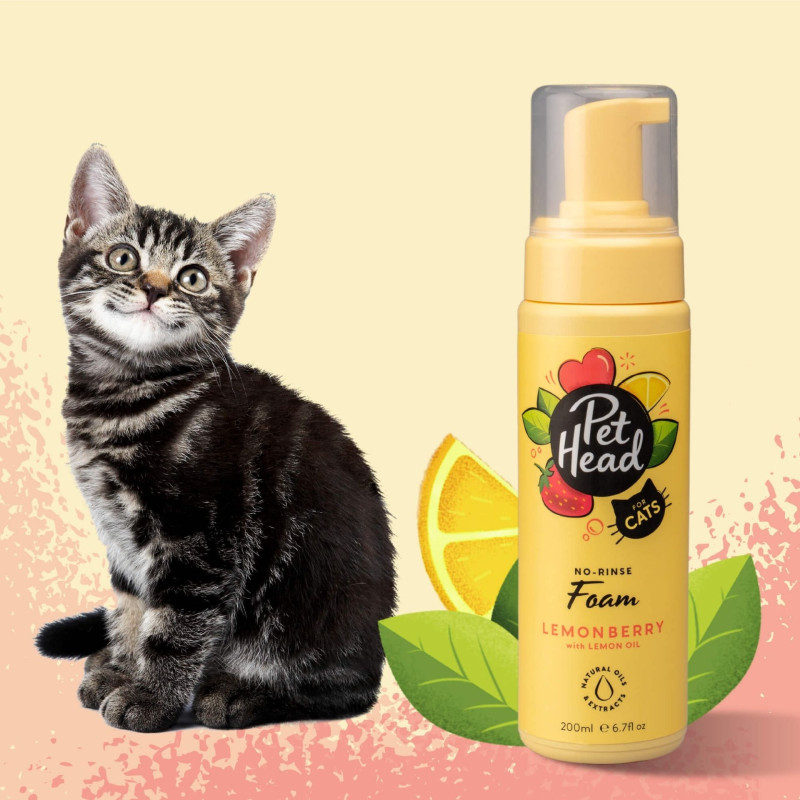 Pet Head Felin' Good Cat Foam No Rinse Дезодорирующий сухой шампунь для котов с ароматом клубники и лимона