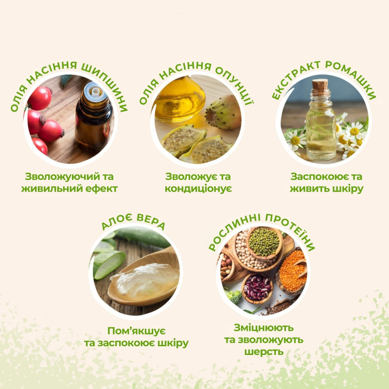 опунции, которое обеспечивает интенсивное увлажнение шерсти, ромашка,