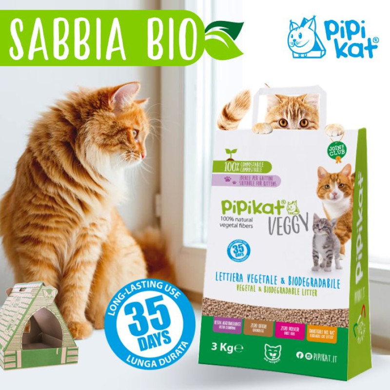 PiPikat Veggy Растительный суперкомкующий растворимый наполнитель без аромата для кошачьего туалета
