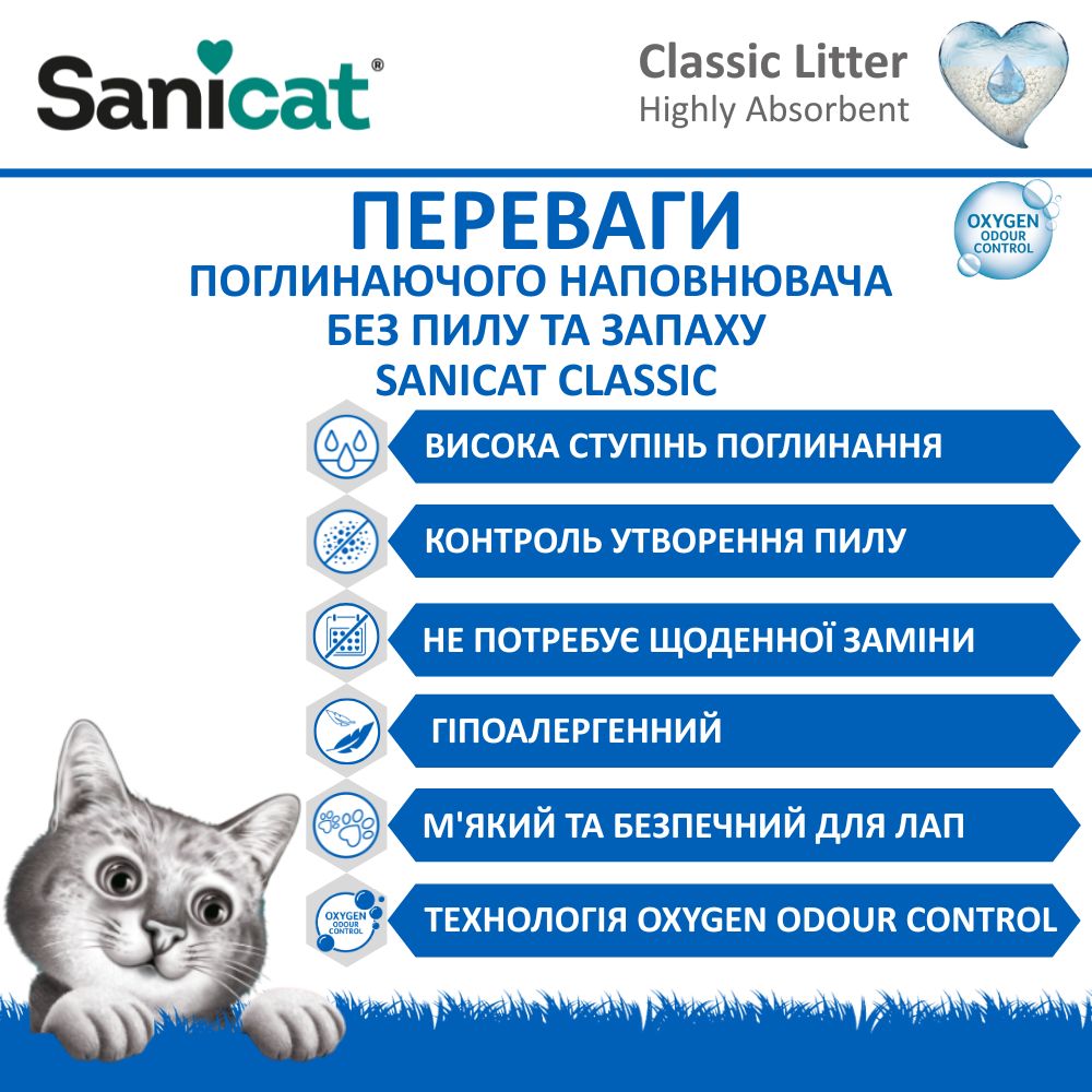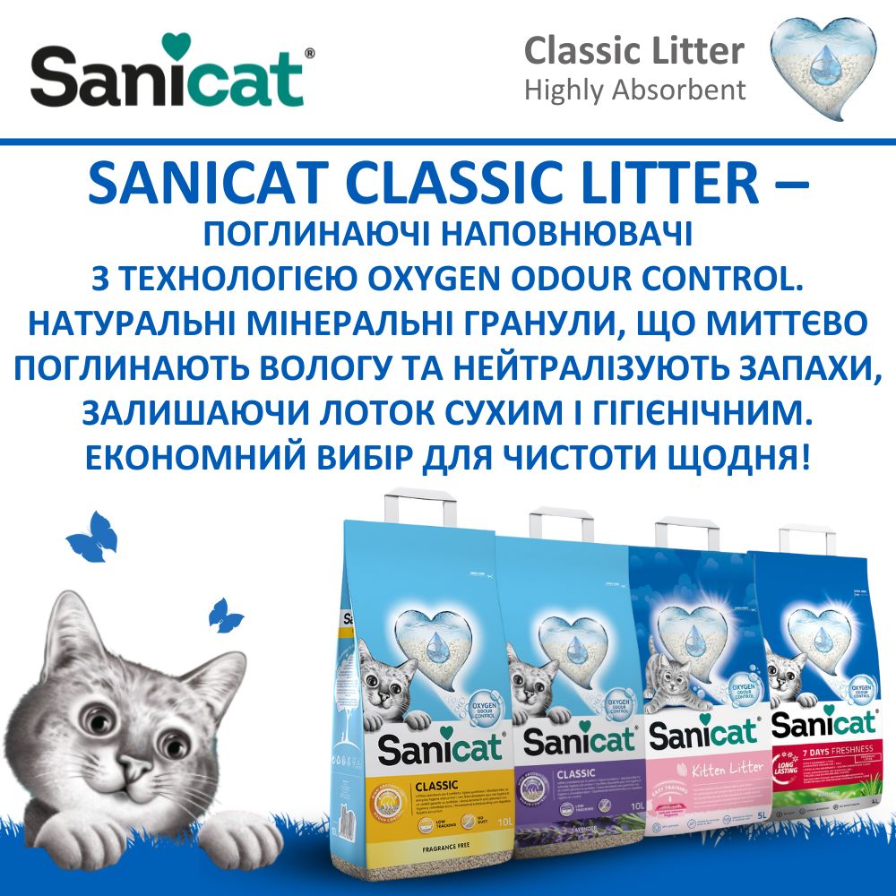 Sanicat Classic Минеральный впитывающий антибактериальный наполнитель для котов без пыли и запаха