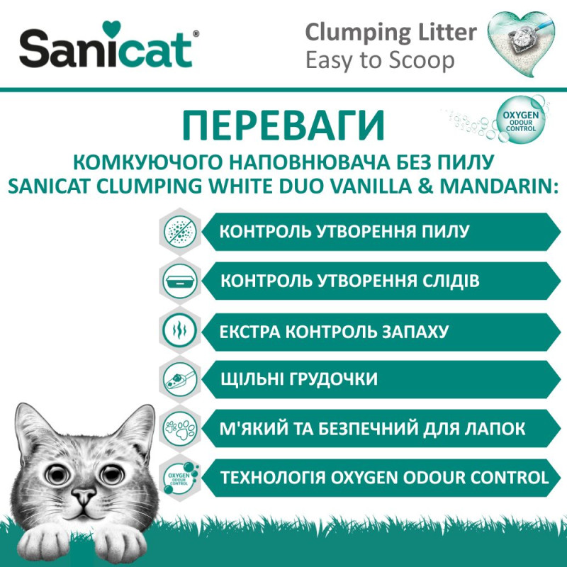 ароматом мандарина и ванили Sanicat Clumping White Duo Vanilla & Mandarin - это когда чистота, комфорт и современные
