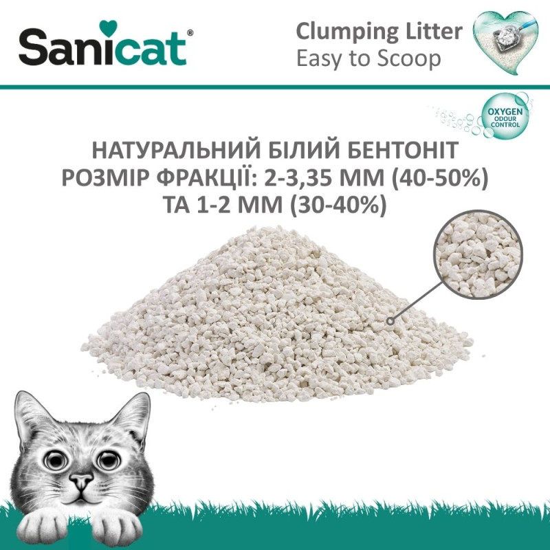 бентонитовый наполнитель для котов без пыли и запаха Sanicat Clumping White