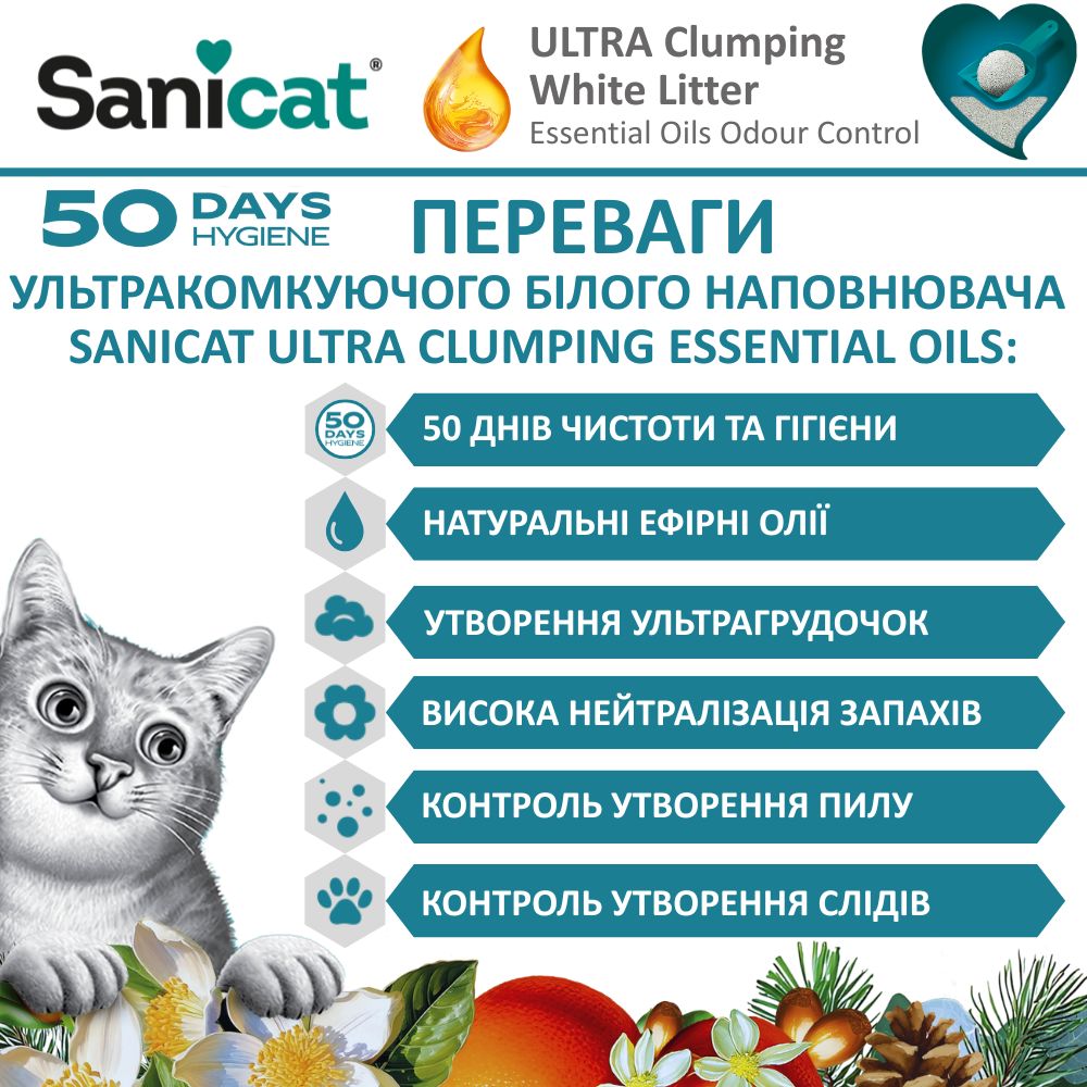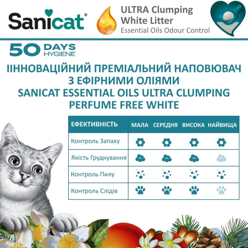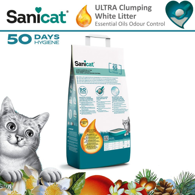 Sanicat Essential Oils Ultra Clumping Perfume Free White Ультракомкующийся белый наполнитель для котов с эфирным маслом