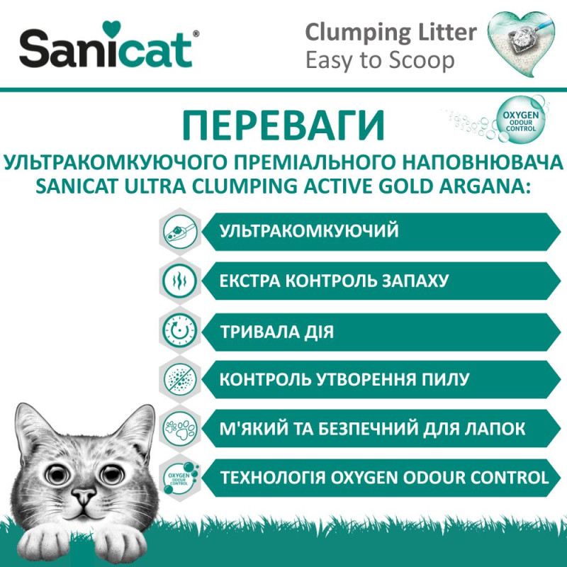 для котов с ароматом арганы Sanicat Ultra Clumping Active Gold Argana - это когда чистота,