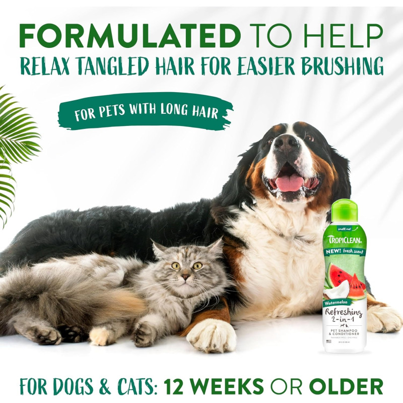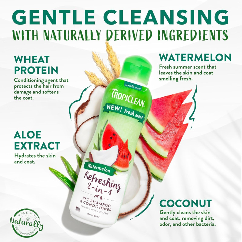 TropiClean Refreshing 2 in 1 Watermelon Освежающий шампунь-кондиционер с арбузом для собак и котов