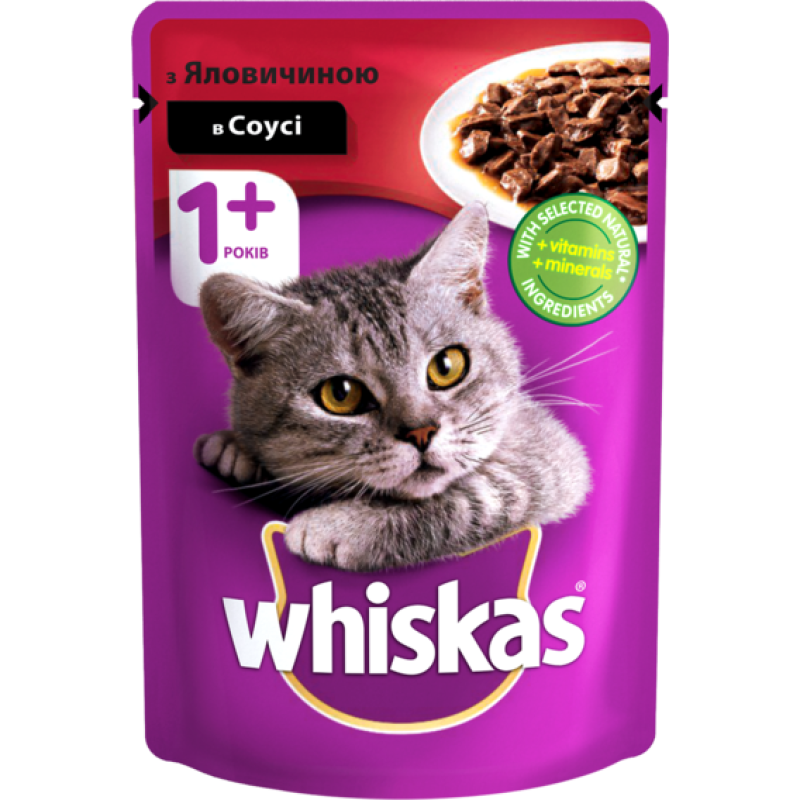 Whiskas Adult 1+ Beef in Gravy Влажный корм для взрослых котов в возрасте от 1 года Говядина в соусе