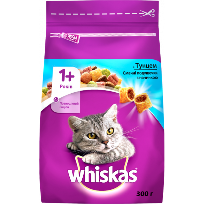 Whiskas Adult 1+ Delicious Pillows with Tuna Сухой корм для котов Вкусные подушечки с тунцом