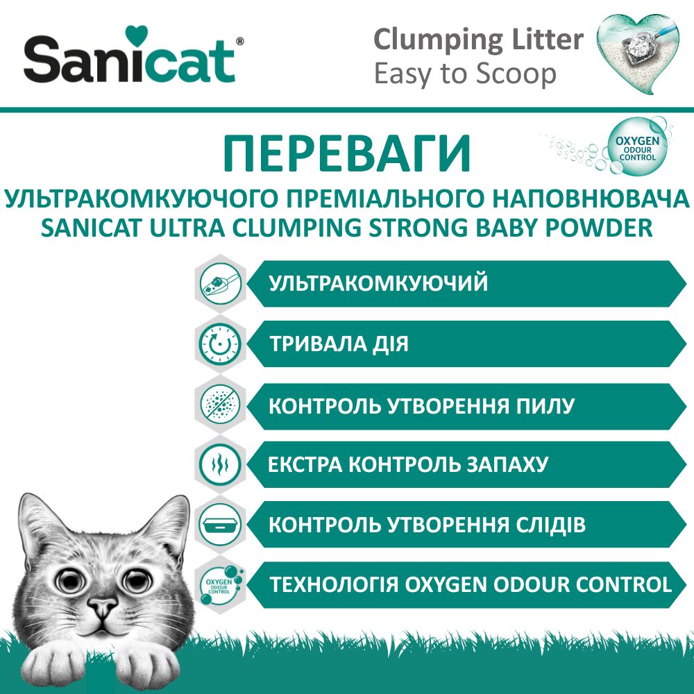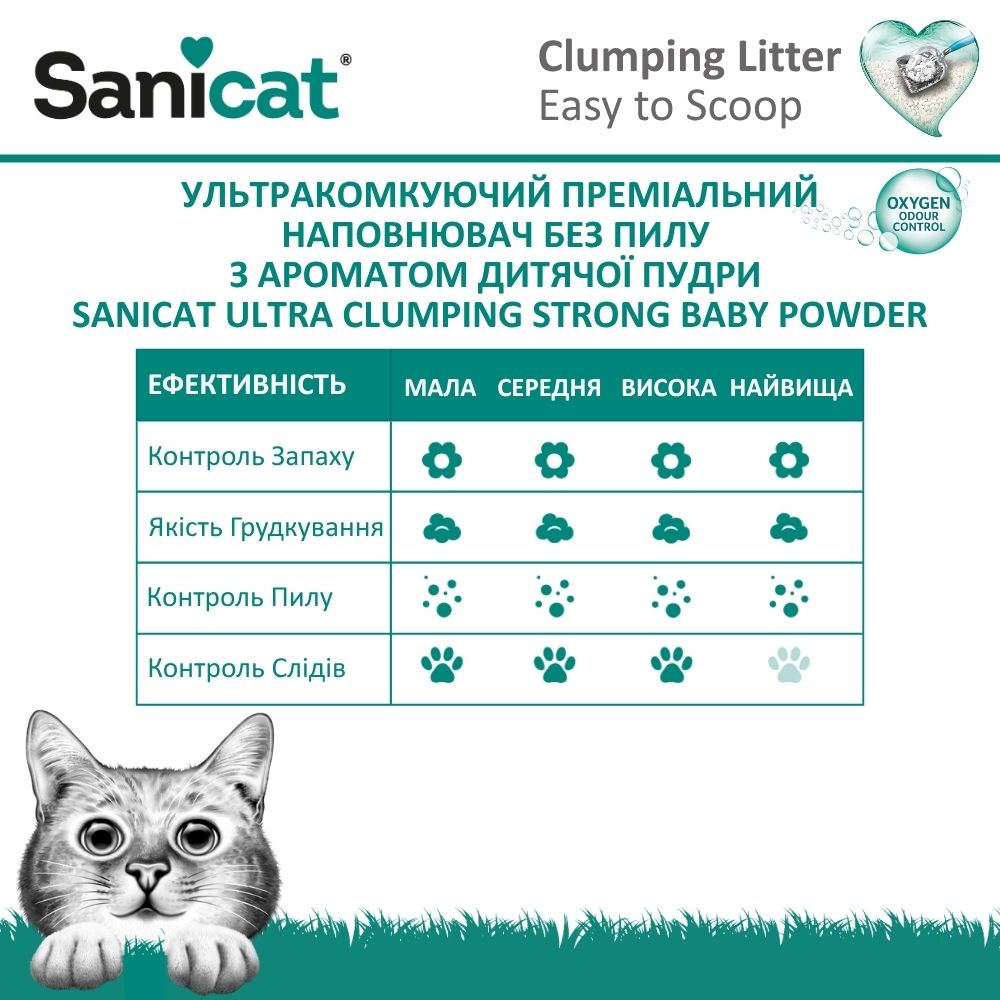 Sanicat Strong Clumps Baby Powder Ультракомкуючий антибактеріальний наповнювач без пилу для котячого туалету