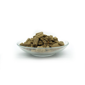 Крафтовий німецький холістик Bellfor Insect Landgut Schmaus Hypoallergenic Mini – це високоякісний беззерновий корм з крокетою до 0,6 см, розроблений відповідно до потреб маленьких собак вагою до 7 кг.Спеціальна рецептура монопротеїнового легкозасвоюваного корму без зерна на основі білку комах Hermetia illucens (личинки Чорної львінки) з бататом ідеально підходить у якості ветеринарної дієти для собак, що страждають на:Непереносимість тваринних та рибних білківХарчову непереносимістьХарчову алергіюХронічні та гострі захворювання ШКТНиркову недостатністьСечокам’яну хворобуМетеоризмСерцеву недостатністьОжиріння чи зайву вагуЗахворювання печінкиДерматологічні захворюванняІнфекції очейЗахворювання опорно-рухового апаратуЦукровий діабетОнкологічні захворюванняСклад: білок комах Hermetia illucens (личинки Чорної львінки), картопляний крохмаль, горох, тваринний жир, батат, картопля, ріжкове дерево, насіння льону, пивні дріжджі, лососева олія, інулін (джерело FOS), морква, кропива, ехінацея, помідори, яблука, манго, сливи, банан, екстракт Юккі Шидігера, вітамінно-мінеральний комплекс, чебрець, базилік, спіруліна, журавлина, селера. Унікальні інгредієнти у складі корму Bellfor Insect Landgut Schmaus Hypoallergenic Mini, низький вміст пуринів, високий вміст Омега-3 та екстракт трав не тільки забезпечують організм собаки життєво-необхідними компонентами, а й запобігають розвиненню серцево-судинних хвороб, дерматологічних захворювань й уповільнюють розвиток сечокам’яної хвороби та ниркової недостатності.Білок Чорної львінки (Hermetia illucens)Білок личинок Чорної львінки – унікальний харчовий інгредієнт, високоякісна альтернатива м’ясу або рибі, джерело білку високої біологічної цінності завдяки повному спектру незамінних амінокислот та хітозан-меланіновому комплексу у складі. Регулярне харчування кормом на основі білку комах сприяє швидкому відновленню організму собаки після хвороби чи операції, підвищує імунітет та насичує тканини киснем, покращує мікрофлору кишківника, усуваючи прояви гастроентерологічних захворювань собак, алергічних реакцій, харчової непереносимості, дерматитів та подразнень шкіри, знижує больові синдроми при захворюваннях опорно-рухового апарату, регулює рівень цукру та холестерину у крові, виводить токсини, важкі метали і вільні радикали, захищаючи організм собаки від старіння та онкологічних захворювань.Низький вміст пуринівПурини - це складні азотовмісні речовини, які під час метаболізму в організмі собаки розпадаються до ксантину, а з нього, під впливом ксантиоксидази, - до сечової кислоти. Крафтовий холістик для собак Bellfor Insect Landgut Schmaus Hypoallergenic Mini має максимально низький рівень пуринів - 17,16 мг / 100 г, що дозволяє вживати корм як основну дієту при сечокам’яній хворобі.Пивні дріжджіПивні дріжджі – концентрат цукромієцитів класу Saccharomyces cerevisiae, що нараховує у своєму складі 17 надважливих амінокислот, комплекс мінералів та є джерелом вітамінів групи B. Систематичне вживання корму із пивними дріжджами у складі стимулює обмінні процеси в організмі собаки, зміцнює імунітет, виводить шлаки і токсини, поліпшує апетит та моторику кишківника, поліпшує стан шкіри та шерсті, скорочуючи час линьки та зміцнює нервову систему.Інулін (FOS)Інулін - фруктоолігосахарид, що має пробіотичну дію, слугує джерелом їжі для корисних кишкових бактерій. Таким чином, вони спр